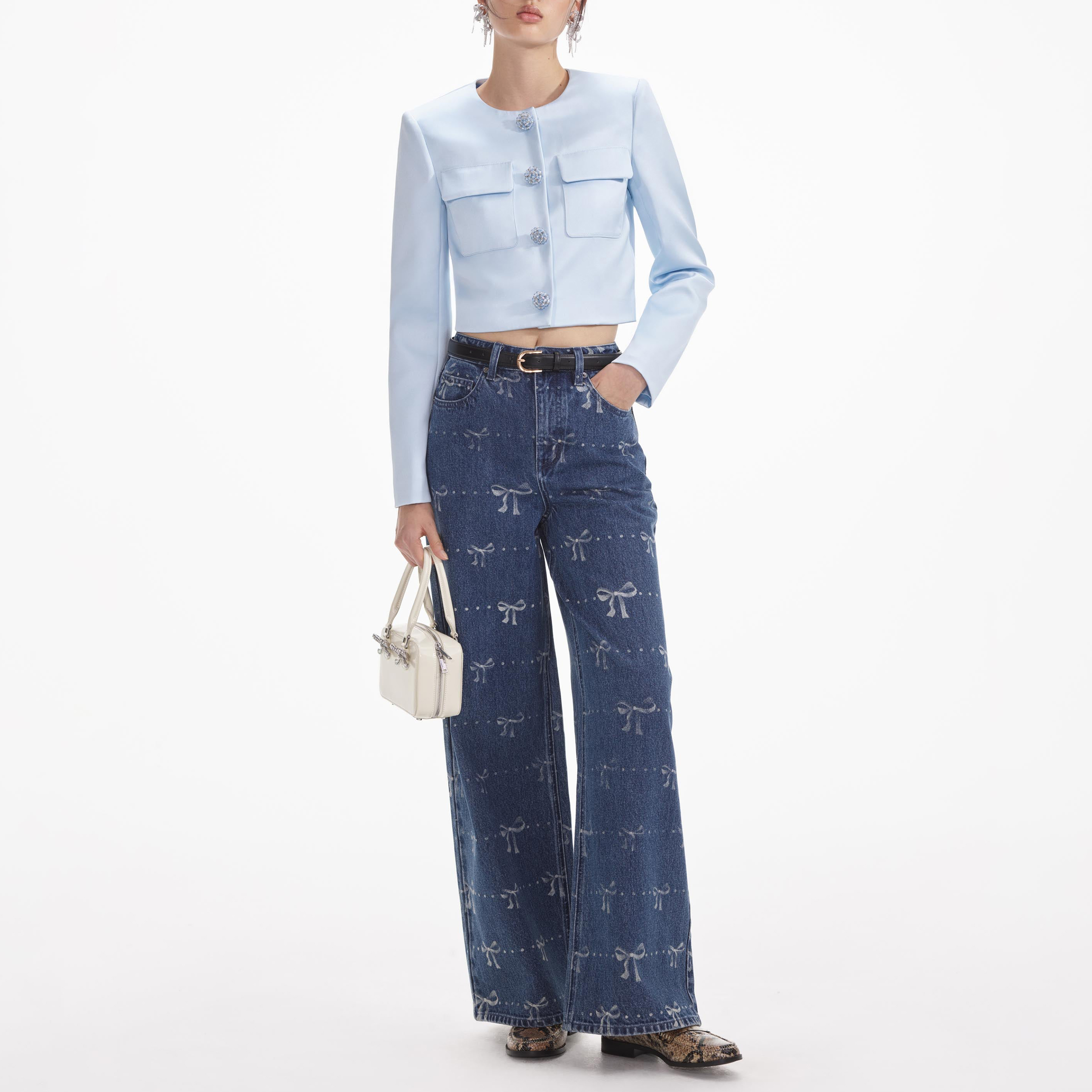 Our house signature takes a new form in these jeans, which are printed with bows and have a flattering wide-legged fit. Pair with a crop top for date night or style with a t-shirt for brunch.