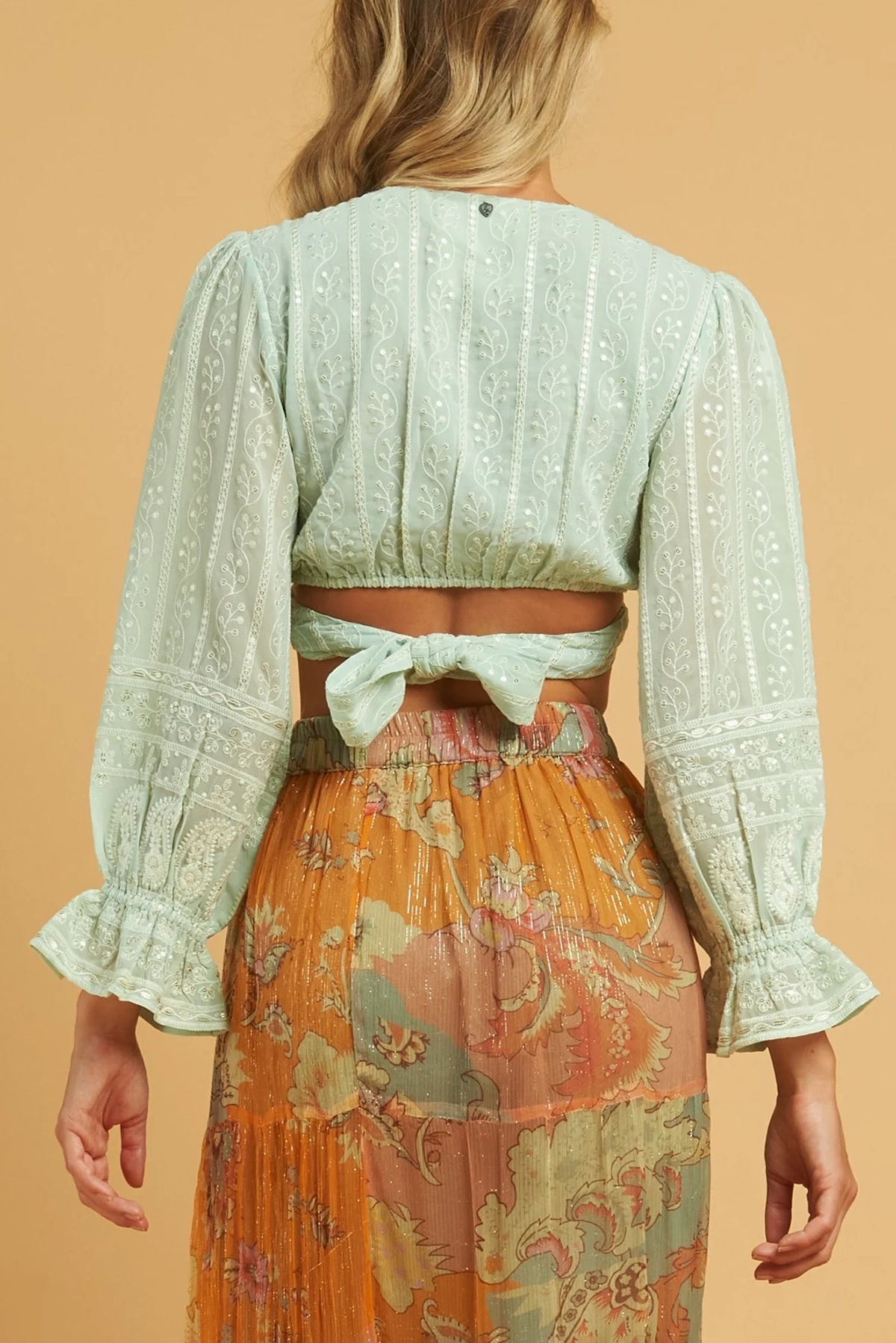 This top comes in a beautiful and delicate blue color, with long sleeves and crossbody straps to ensure a perfect fit.