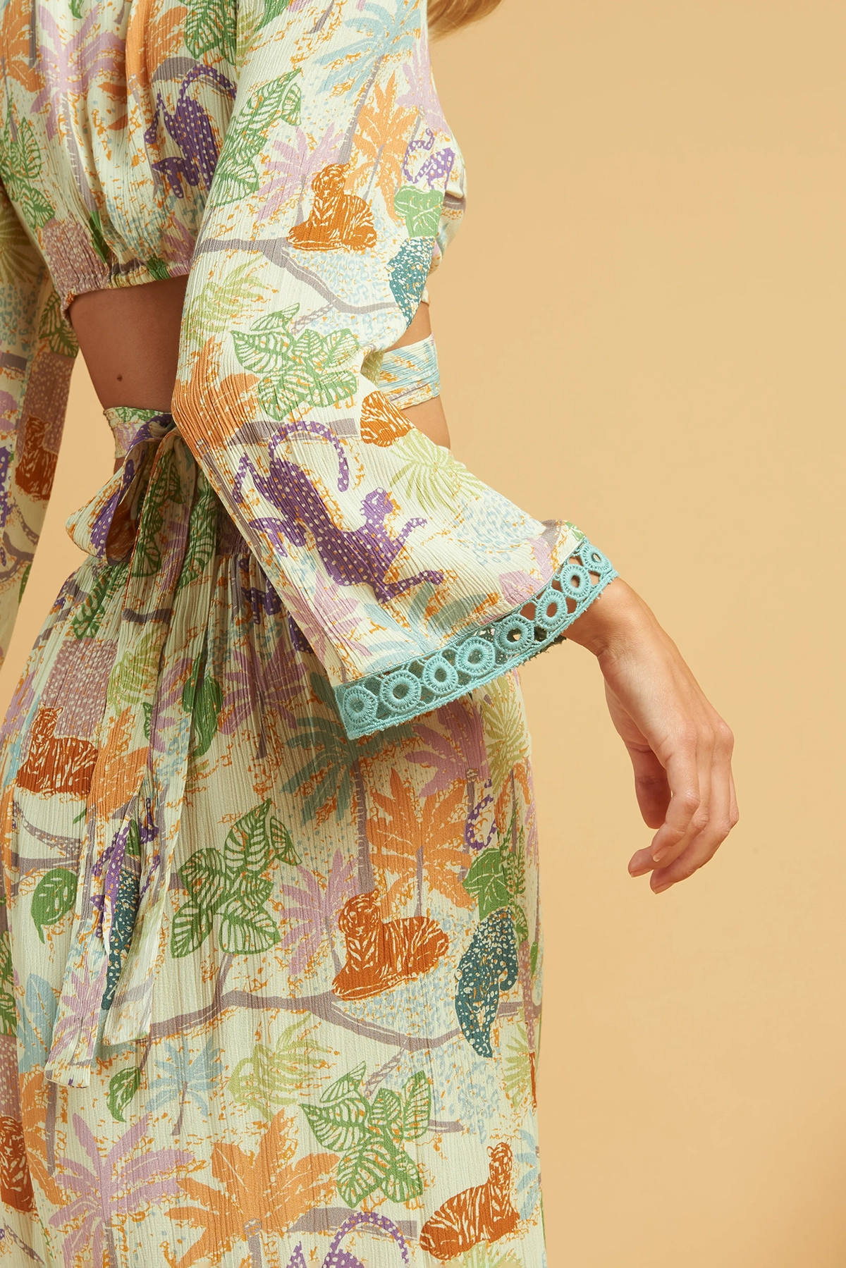 The top a unique piece with long and wide sleeves, a flash of warm colors that contemplates the warmth of summer