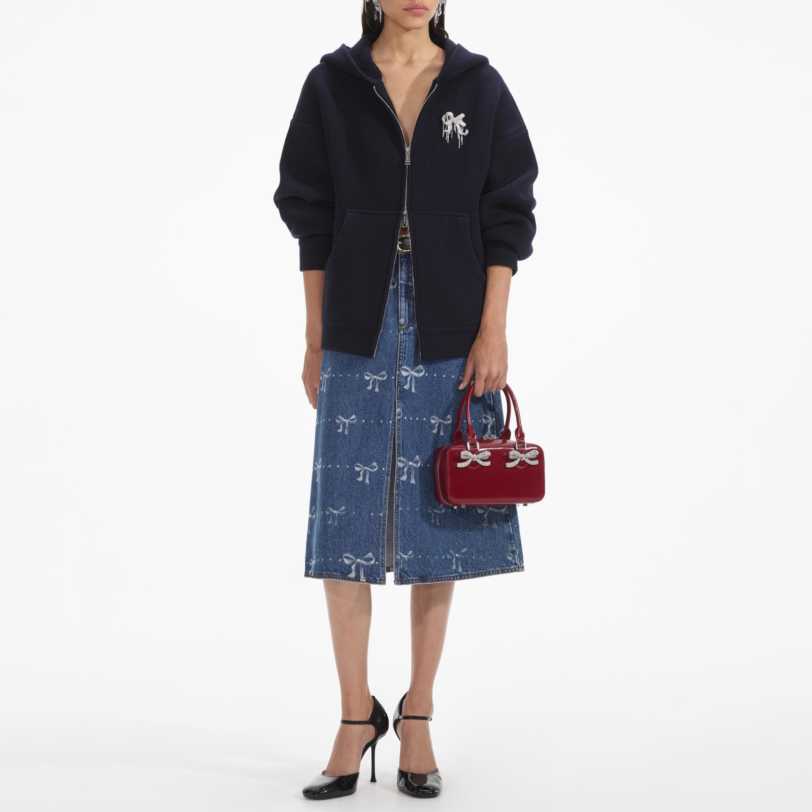 A secret weapon for effortless dressing, this navy hoodie's knitted fabric lends it a luxe, relaxed fit. Dress it down with denim for weekend brunches or style it with tailored separates and heels for a chic juxtaposition.