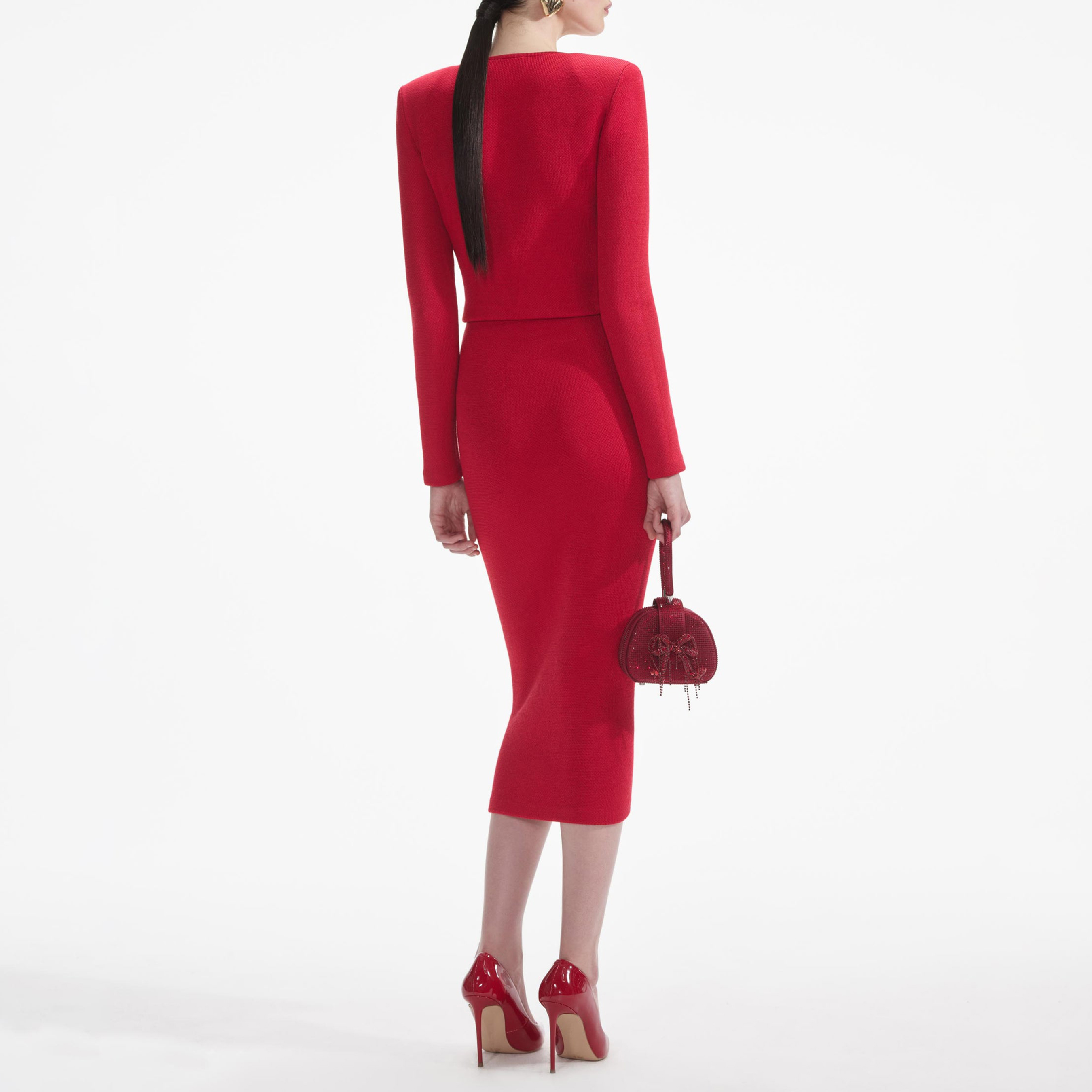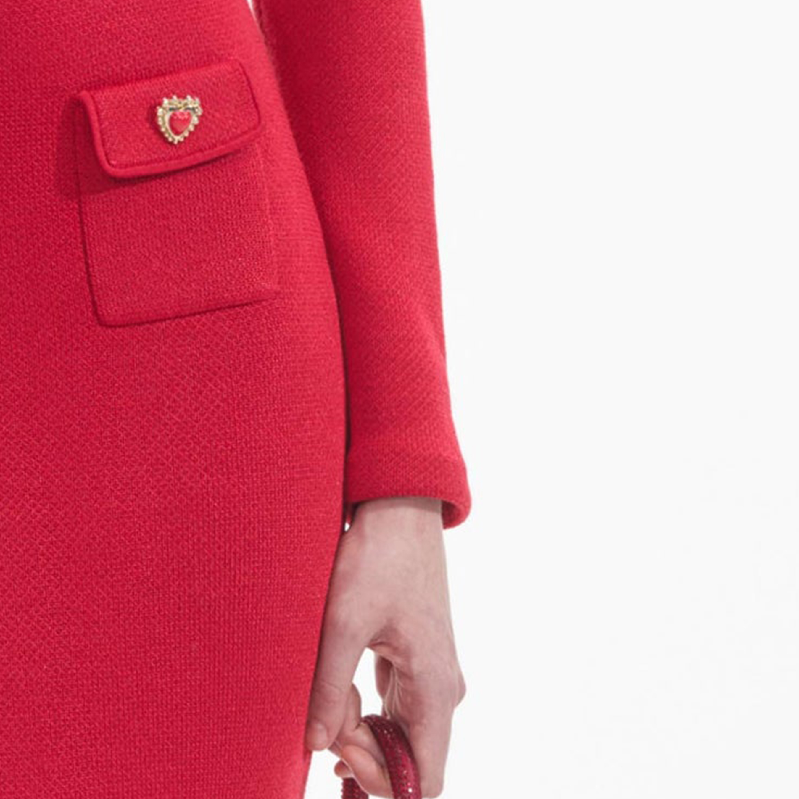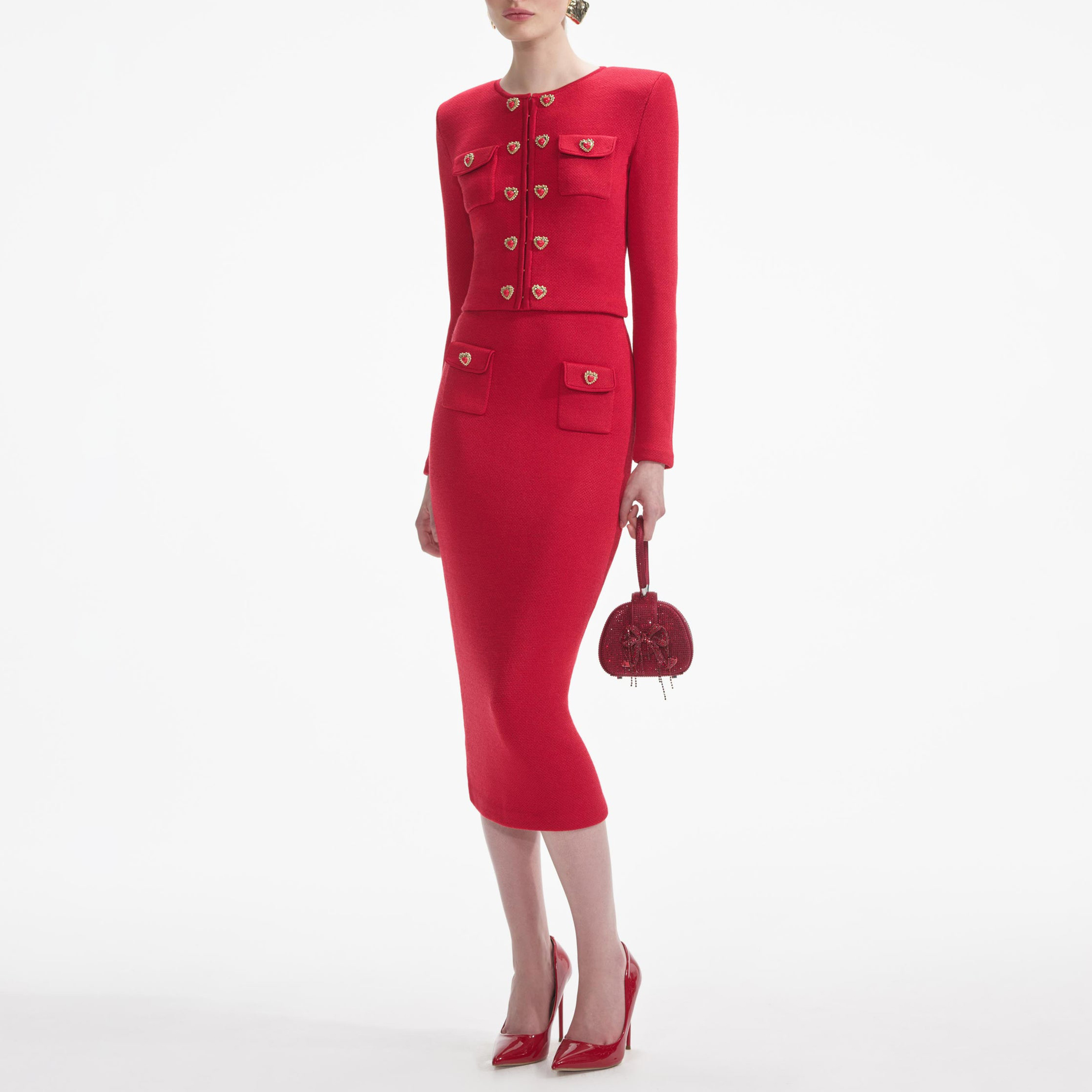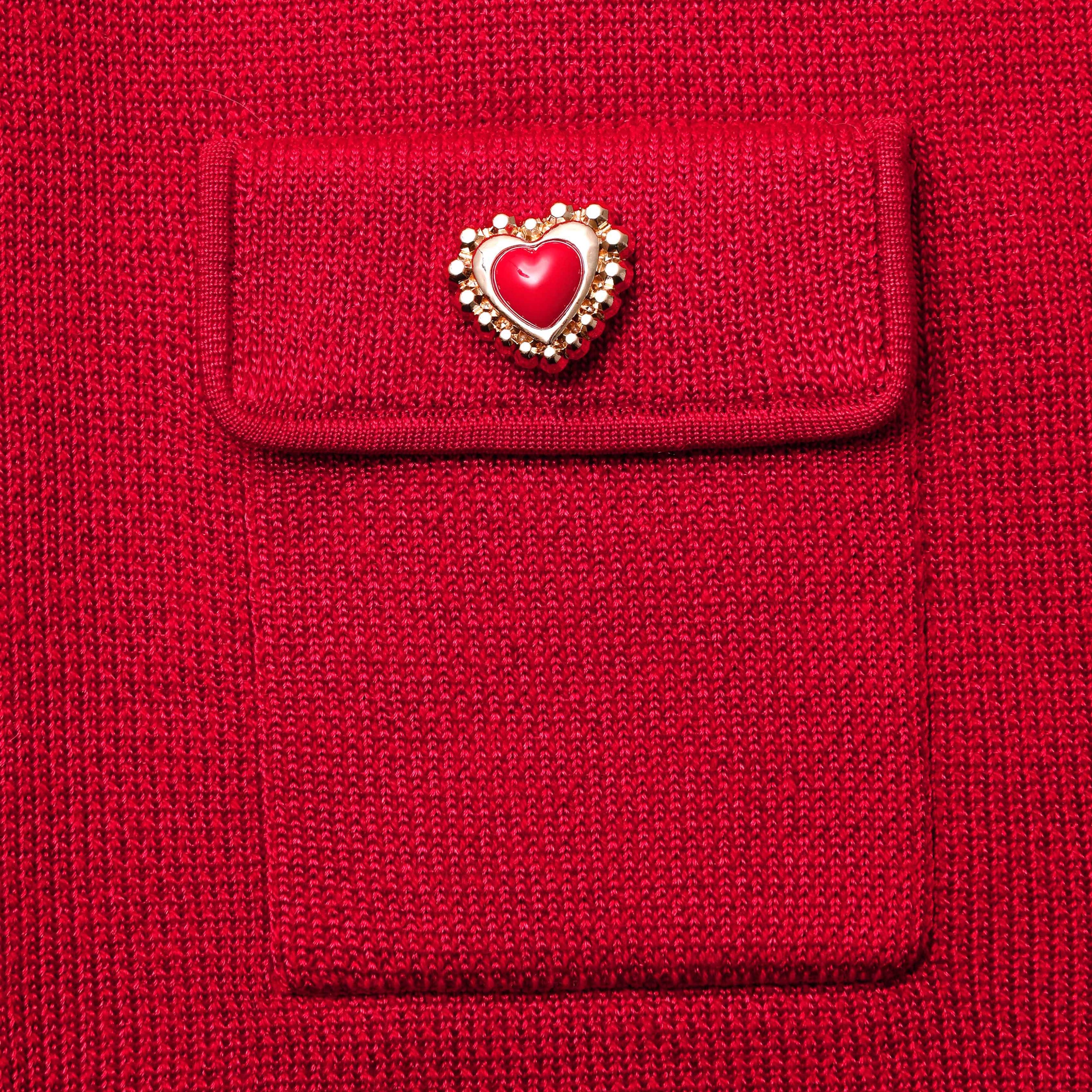 We love a co-ord, and this cardigan — with its bold red knit, heart buttons and chic cropped fit — is one half of an epic date night look. Pair with our statement earrings for full impact.